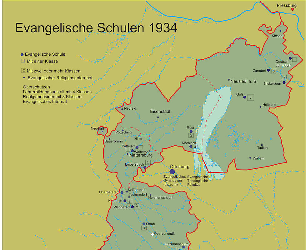 Das evangelische Schulwesen in Westungarn konnte erst nach dem Reichstag von 1790/91, der die Autonomie gewährte, aufgebaut werden. In kurzer Zeit entstanden in den Toleranzgemeinden auch Schulen, vereinzelt auch in den Filialgemeinden. Aber erst zu Beginn des 20. Jahrhunderts war das evangelische Elementarschulwesen voll ausgebildet. Die Schulen waren zunächst oft provisorisch, in Privathäusern, untergebracht. Schon bald aber wurden die nötigen Gebäude - meist ein Klassenraum und eine Lehrerwohnung - errichtet. In den Filialgemeinden entstanden vielfach Schulen mit Glockentürmen, in denen auch Gottesdienste abgehalten werden konnten. Im Laufe des 19. Jahrhunderts wurden neue Schulgebäude errichtet, meist mit einem Garten, der neben der Versorgung des Lehrers auch Unterrichtszwecken diente. Die Schulen gehörten den Kirchengemeinden und wurden vom Presbyterium oder auch vom Konvent geleitet. Die Presbyterien stellten die Lehrer an, die von den Gemeindemitgliedern gewählt wurden. Senior oder Superintendent hatten Kontrollrechte. Seit etwa 1835 wurden öffentliche Prüfungen abgehalten.