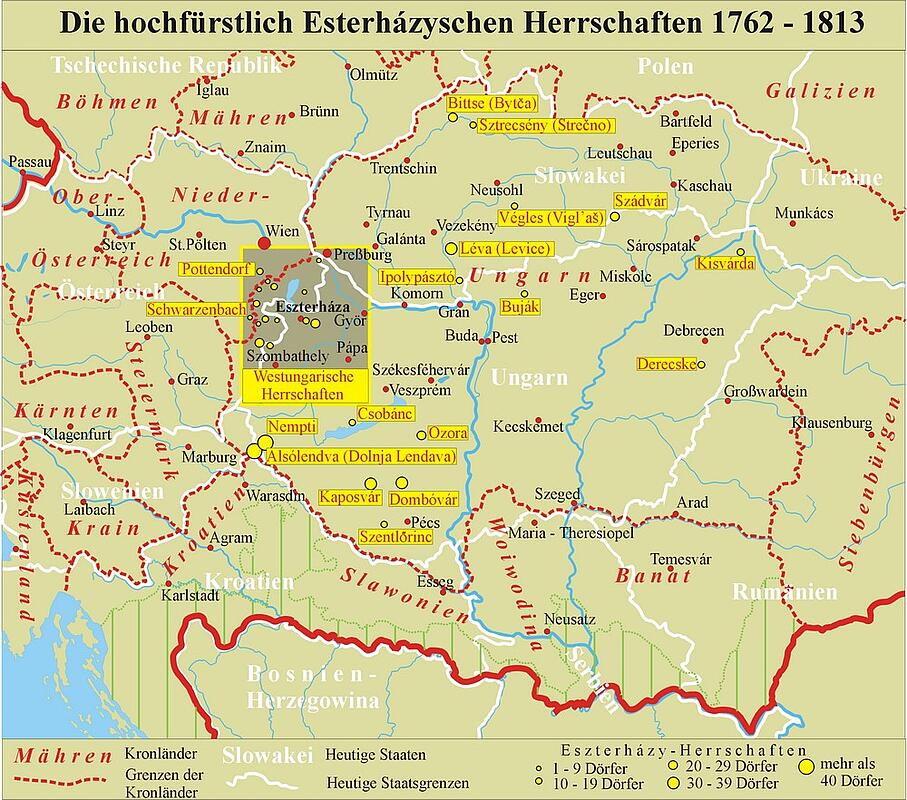 Keine andere Magnatenfamilie hat die Geschichte des westungarisch-burgenländischen Raumes so sehr geprägt wie die Esterházy. Nahezu das gesamte nördliche und mittlere Burgenland unterstand ihrer Grundherrschaft. Bis zum heutigen Tag hat die Familie riesige Grundbesitzungen. Die Familie war bis in das 16. Jahrhundert unbedeutend und gehörte keineswegs zum ungarischen Hochadel. Im Spätmittelalter waren sie allenfalls Mitglieder des ungarischen Komitatsadels.