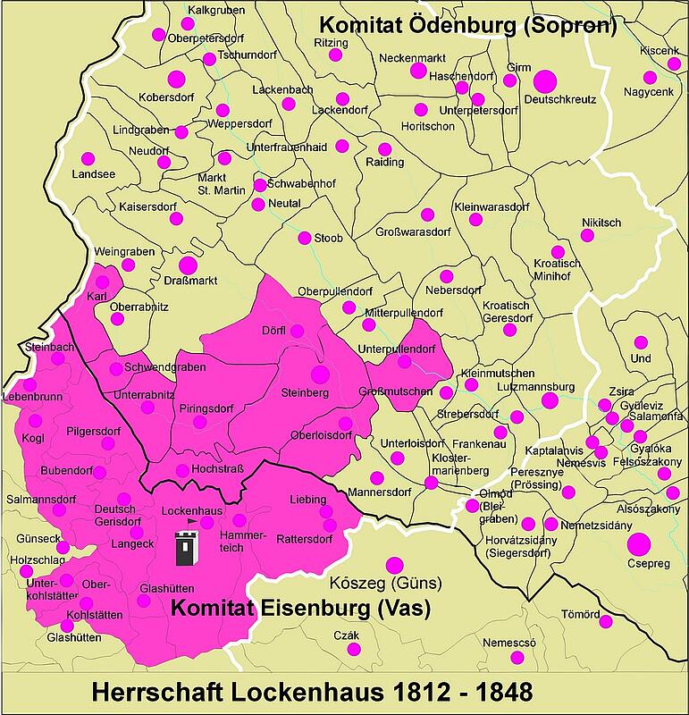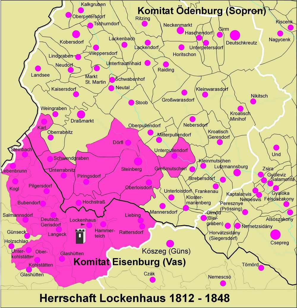 1848 gehörten folgende 25 Orte zur Herrschaft Lockenhaus:
