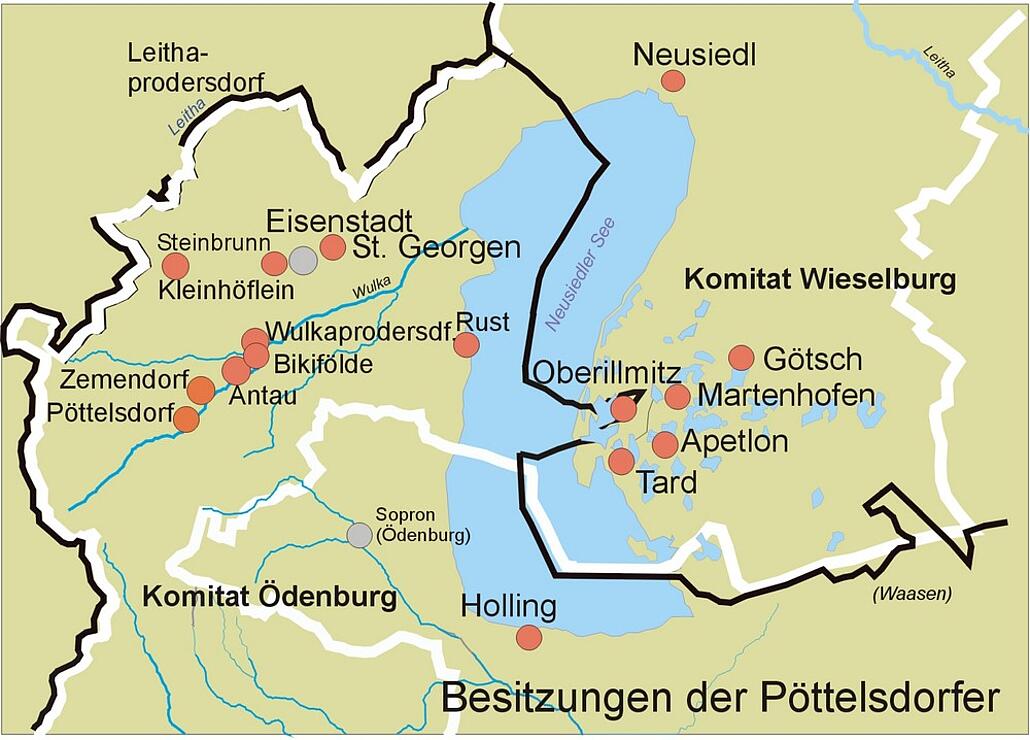 Die Pöttelsdorfer waren im 14. Jahrhundert im Wulkabecken von einiger Bedeutung und brachten es zu einem ansehnlichen Besitz. Man kann sie als typische Vertreter des mittleren Adels sehen. Neben Pöttelsdorf hatten sie vor allem in Steinbrunn Besitzungen. Erste Vertreter der Familie findet man schon im 13. Jahrhundert. Ob sie mit den späteren Pöttelsdorfern verwandt waren ist unbekannt. Diese späteren Pöttelsdorfer stammen anscheinend vom königlichen Gefolgsmann Csepan ab, vermutlich - so wie die Osl aus der Ödenburger Burgmannschaft. Csepans Nachkommen konnten Besitz östlich des Neusiedler Sees in Götsch (bei Apetlon), Tard und Apetlon erwerben. und nannten sich "von Götsch". Die Pöttelsdorfer spalteten sich in mehrere Linien auf. 1271 ist ein Paul nachweisbar, der von Nikolaus, dem Sohn des Keszöd von Schattendorf, 210 Joch in Steinbrunn mit sieben Lehen und sieben Weinärten sowie einer Wiese kaufte. Der nächste Pöttelsdorfer wird erst wieder Jahrzehnte später erwähnt, ein Paul II., Sohn des Martin. Paul II. erwarb 1344 von den Kreuzrittern in Ödenburg in Steinbrunn ein ganzes Lehen im Ausmaß von 12 Joch Ackerland. Er war mit den niederösterreichischen Pottendorfern und den Trausdorfern verwandt. Johann von Trausdorf, sein Neffe, versuchte mit Hilfe von geschickten Fälschungen, sich in den Besitz von Steinbrunn zu setzen. Das Palatinalgericht deckte die Fälschungen auf und verurteilte Johann zum Verlust seiner Besitzungen in Trausdorf, Steinbrunn, Wulkaprodersdorf und St. Georgen- Ein Drittel davon erhielten die Pöttelsdorfer. Später verpfändete Nikolaus V. von Pöttelsdorf die Hälfte seiner Besitzungen an den Bischof von Agram, Stefan, und dessen Bruder Johann, Söhne des Lorenz von Kanizsa. Mit Nikolaus V. starb diese Linie der Pöttelsdorfer aus. Um das Erbe gab es einen heftigen Streit zwischen Hamul von Oslip, der mit einer Schwester Nikolaus V. verheiratet war, und den Kanizsai. Letztere setzten sich schließlich durch.