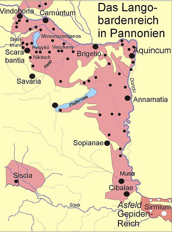 Die im Herbst 526 nach Pannonien eingedrungene erste Welle der Langobarden tat dem Wesen nach nichts anderes, als dass sie entlang der Donau von Wien bis südlich von Budapest die Kontrolle über die Befestigungswerke und die Furten übernahm. Die Gräberfelder der ersten Langobardischen Siedler liegen bei den ehemals römischen Zentren. Die Eroberer ließen sich offenbar in früheren römischen Siedlungen nieder. Eine Massenumsiedlung des langobardischen Volkes fand 546/47 statt, als ganz Westungarn und das Burgenland unter die politische Oberhoheit der Langobarden gekommen war, doch das ganze Gebiet wurde auch dann noch nicht besiedelt. Eine kleine Enklave der von den Langobarden unterworfenen Heruler bestand weiterhin im Umkreis des Neusiedlersees und der angrenzenden Ausläufer der Ostalpen (Hegykö- Gruppe), während das übrige Gebiet von den Langobarden besetzt war.
